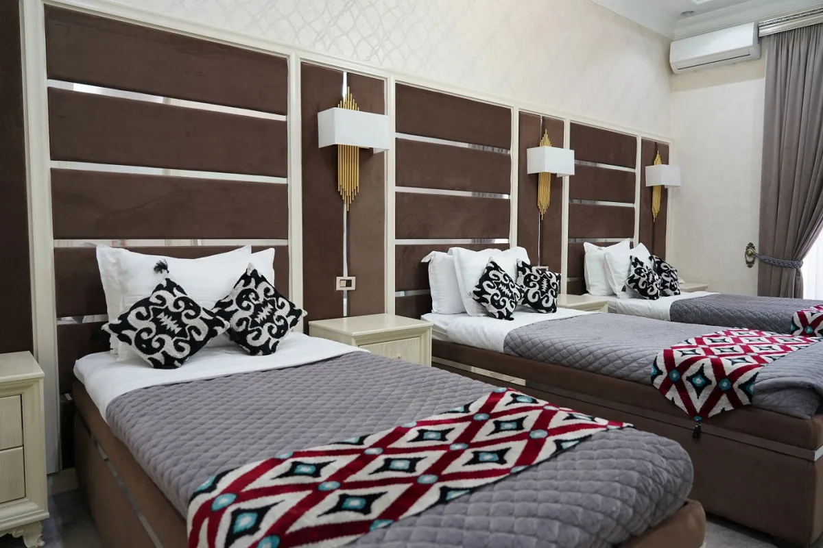 Shaxzoda Elite – современный отель в Самарканде, расположенный в центральной части города, в удобной локации рядом с Центральным парком, магазинами, ресторанами и основными городскими маршрутами. Благодаря такому расположению он становится комфортной отправной точкой для знакомства с Самаркандом и его главными историческими достопримечательностями, до которых можно быстро добраться за короткое время.