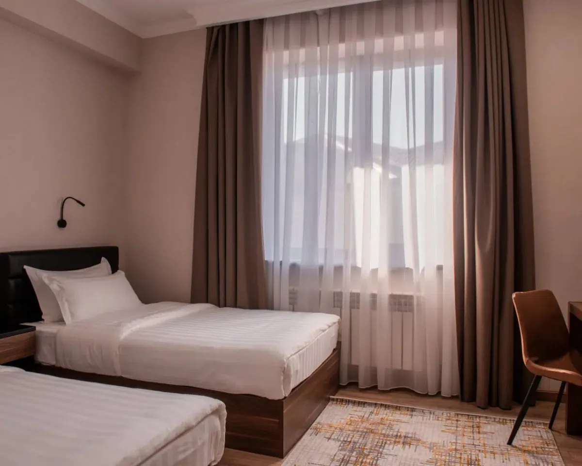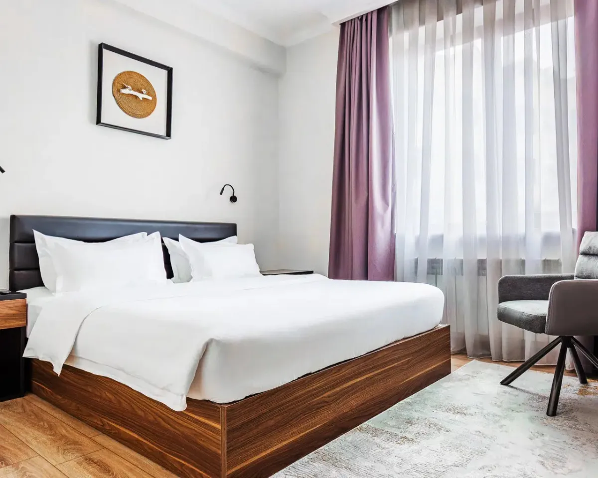 20 м2, с балконом или без, спальня с двуспальной кроватью размера king-size или с двумя односпальными кроватями, кресло, рабочее место. Максимальное количество гостей: 2.Suite/ Сюит