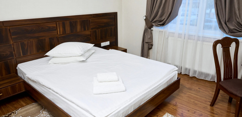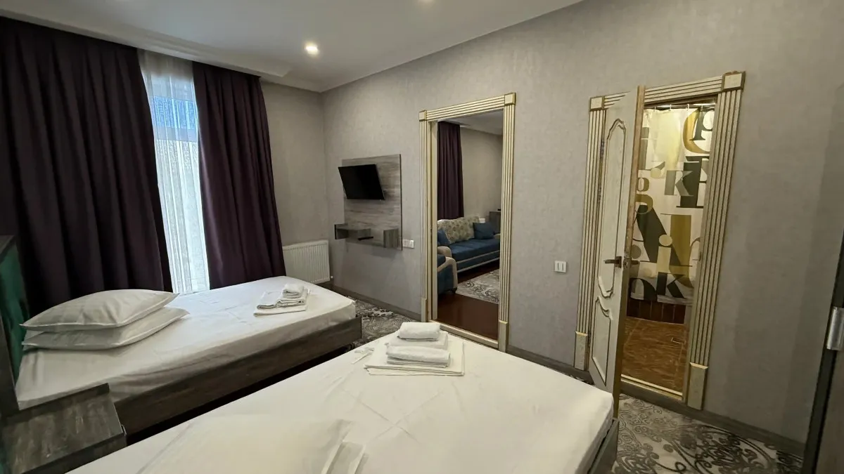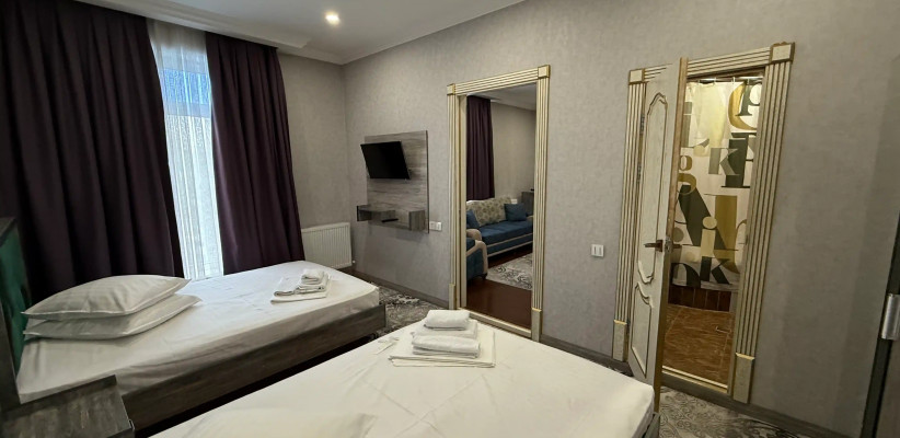 18-25 м2, спальня с односпальной кроватью или с двуспальной кроватью, рабочее место. Максимальное количество гостей: 1-3.Suite/ Сьют