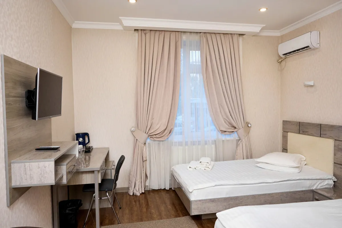21 м2, спальня с двуспальной кроватью или с двумя односпальными кроватями, рабочее место. Максимальное количество гостей: 1 или 2.Standard Room/ Стандарт