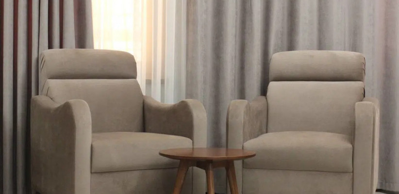 35 м2, спальня с двуспальной кроватью размера king-size, два кресла с кофейным столиком, рабочее место. Максимальное количество гостей: 2.Super Luxe/ Супер люкс