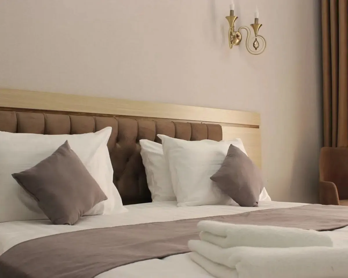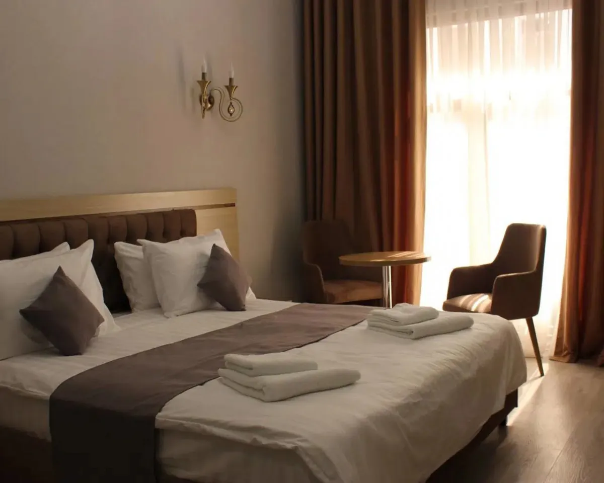 спальня с двуспальной кроватью или с двумя односпальными кроватями, два кресла с кофейным столиком, рабочее место. Максимальное количество гостей: 2.Standard Room/ Стандарт