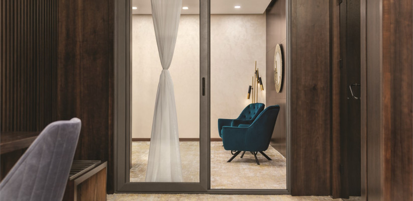 51 м2, вид во двор, двуспальная кровать, гостиная зона. Максимальное размещение: до 4Suite