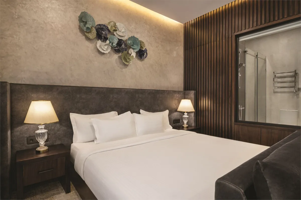 60 м2, вид во двор/ город, двуспальная кровать, гостиная. Максимальное размещение: до 3Executive Suite