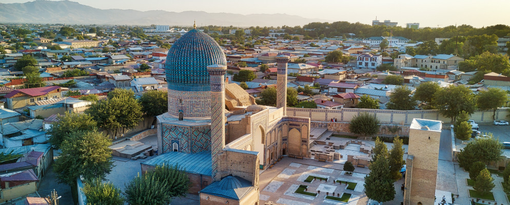 10:00–13:00 – Экскурсия по Самарканду: мавзолей Гур-Эмир – грандиозная династическая усыпальница Тамерлана, послужившая прототипом для мавзолеев Хумаюн в Дели и Тадж-Махал в Агре; памятник Амиру Тимуру; самая известная площадь Центральной Азии – Регистан, окруженная тремя монументальными медресе – Шер-Дор, Тилля-Кари и медресе Улугбека.