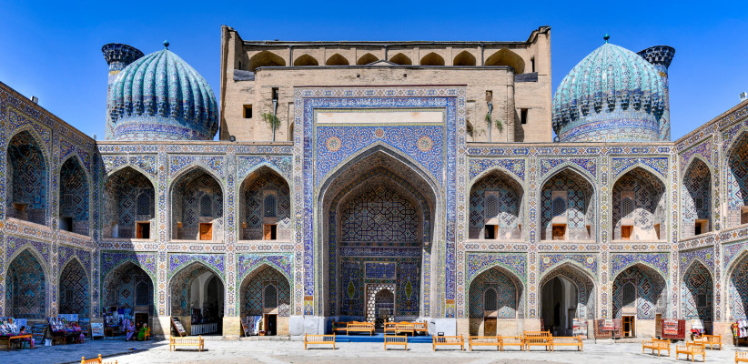 Площадь Регистан – один из выдающихся образцов градостроительного искусства Средней Азии, сложившийся в XVII веке и состоящий из трех медресе – Улугбека (1417-1420 гг.), Шер-Дор (1619-1636 гг.) и Тилля-Кари (1647-1660 гг.). На нем можно «перелистать страницы» многотысячной истории Самарканда.