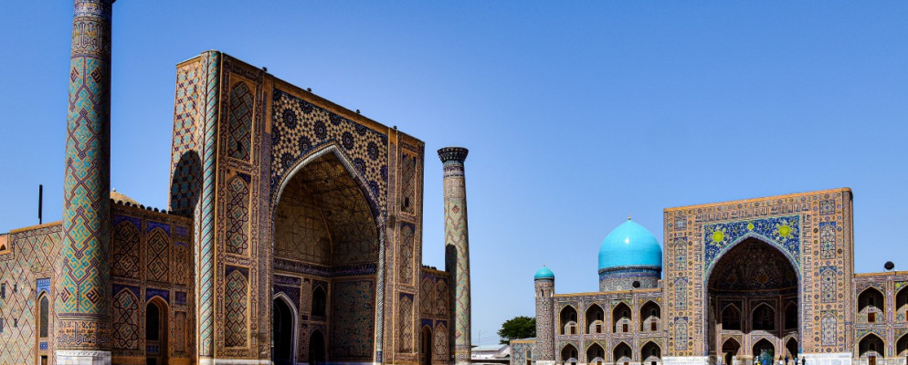 Площадь Регистан - один из выдающихся образцов градостроительного искусства Средней Азии, сложившийся в XVII веке и состоящий из трех медресе - Улугбека (1417-1420 гг.), Шер-Дор (1619-1636 гг.) и Тилля-Кари (1647-1660 гг.). На нем можно "перелистать страницы" многотысячной истории Самарканда.