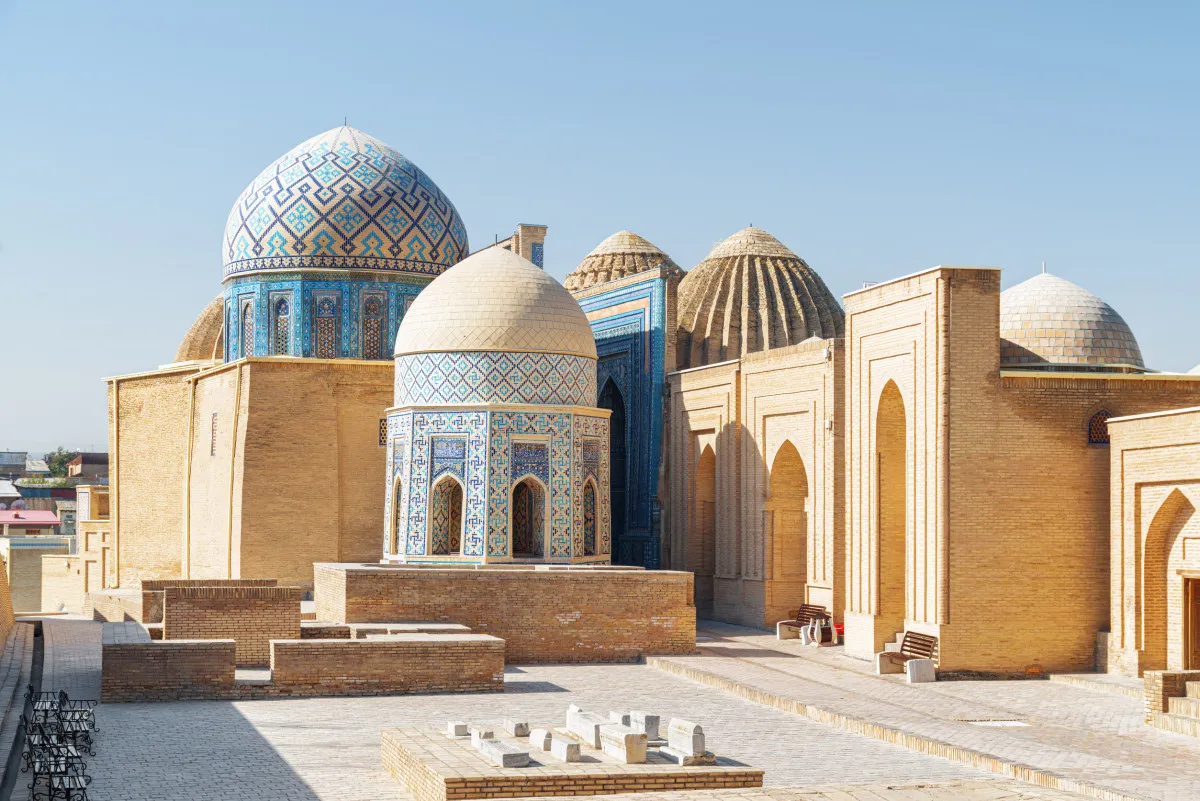 Экскурсия по Самарканду: самая известная площадь Центральной Азии – Регистан, окруженная тремя монументальными медресе – Шер-Дор, Тилля-Кари и медресе Улугбека; мавзолей Гур-Эмир – грандиозная династическая усыпальница Тамерлана, послужившая прототипом для мавзолеев Хумаюн в Дели и Тадж-Махал в Агре.