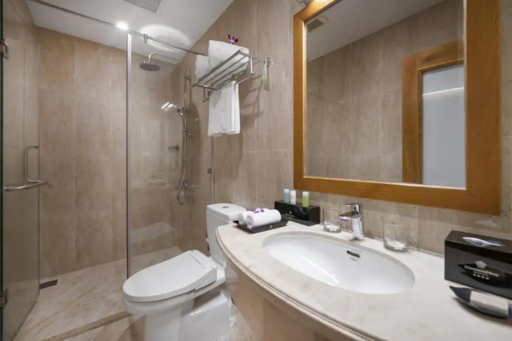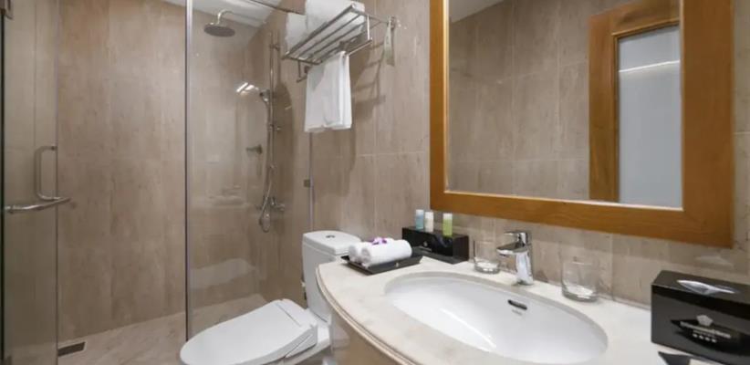 In the room, there is a shower, a TV, a mini-bar, a bathrobe and slippers. Please note that the listed services may not be available in all the rooms.