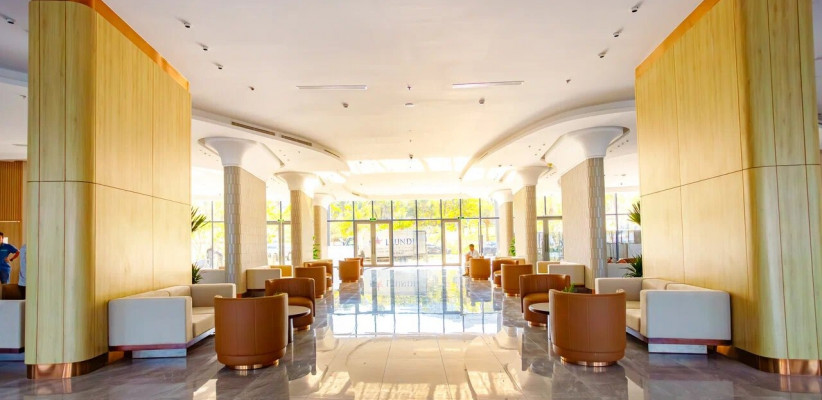 Отель Lugano Resort And Spa 5* расположен на первой береговой линии живописного пляжа Бай Дай в Камрани, всего в 2 км (15 минутах езды) от международного аэропорта. Современное восьмиэтажное здание отеля предлагает 576 элегантных номеров и люксов с частными балконами или террасами, в каждом из которых туристам доступны высокоскоростной Wi-Fi и популярные русскоязычные ТВ-каналы. На территории комплекса созданы все условия для активного и расслабленного отдыха: работают два просторных бассейна с пресной водой, современный SPA-центр и тренажерный зал. Профессиональная многоязычная команда аниматоров ежедневно организует занятия водной гимнастикой, турниры по пляжному волейболу и вечерние шоу мирового класса. Для туристов предусмотрено разнообразное питание в главном ресторане Lagun, работающем по системе «шведский стол», а также изысканные блюда в ресторане Ocean A la carte.
