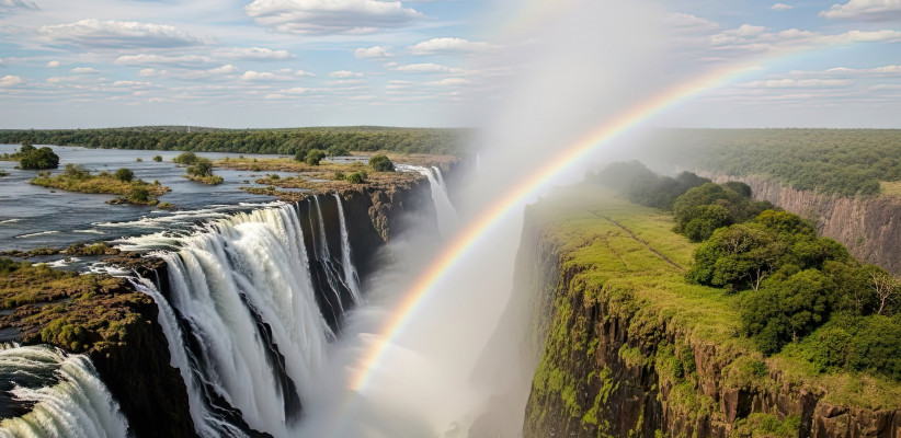 Туристы увидят одно из величайших природных чудес света во всей его мощи и великолепии. Маршрут проходит через влажный тропический лес вдоль края ущелья, где низвергаются потоки реки Замбези, известные местным жителям как «Гремящий Дым» (Mosi-oa-Tunya). Под гул падающей воды и в облаке прохладных брызг гид расскажет туристам самые увлекательные истории и легенды об этом месте.