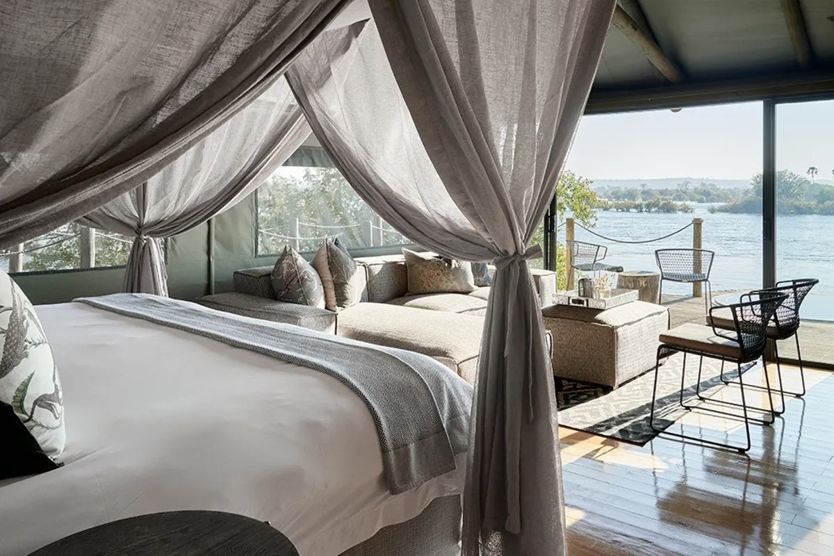 Victoria Falls River Lodge расположенный на берегу реки Замбези в национальном парке Замбези, всего в нескольких км от Водопада Виктория. Отель сочетает премиальный комфорт, шатровые люксы и виллы с террасами, бассейны и спа‑зону с уникальным опытом наблюдения за дикой природой и сафари. Расстояние до международного аэропорта Виктория-Фоллс составит примерно 30 км.