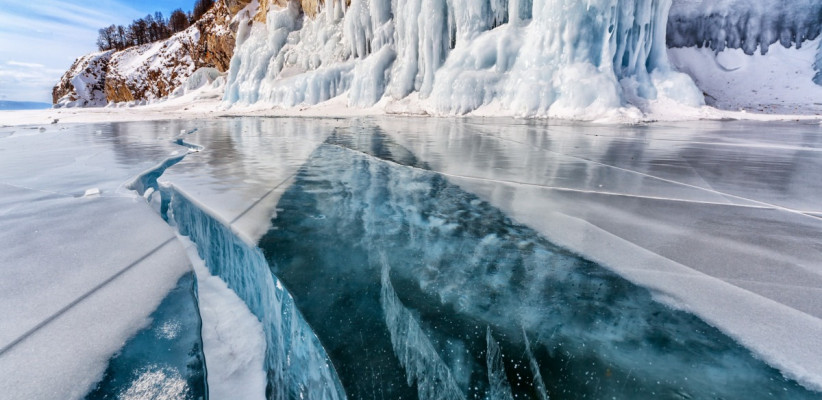 Выезд на лед Байкала. Глубина Байкала в этих местах измеряется уже в сотнях метров. Для самых смелых и сильных, будет предоставлена возможность пробурить лед самостоятельно.