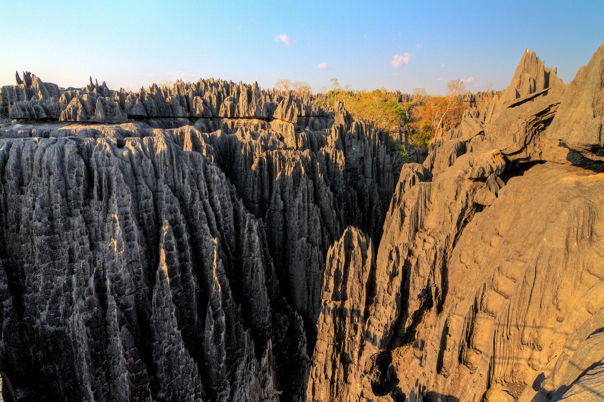 Красные цинги – это природное явление на Мадагаскаре, тысячелетние остроконечные известняковые скалы, сформировавшиеся в результате эрозии. Они находятся в северной части острова, вблизи национального парка Анкарана. Причудливые скалы создают инопланетные пейзажи, ставшие популярным фоном для фотографий. Среди красных цинг обитают лемуры и крошечные хамелеоны брукезии размером с ноготь – самые маленькие рептилии в мире. Неспешная прогулка по этим уникальным марсианским скалам дарит незабываемые эмоции.
