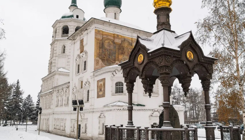 Знаменский монастырь – женский комплекс с ажурной колокольней, где покоятся мощи святителя Софрония Иркутского; один из символов города.