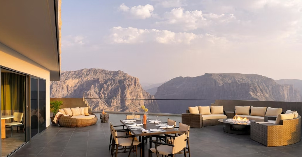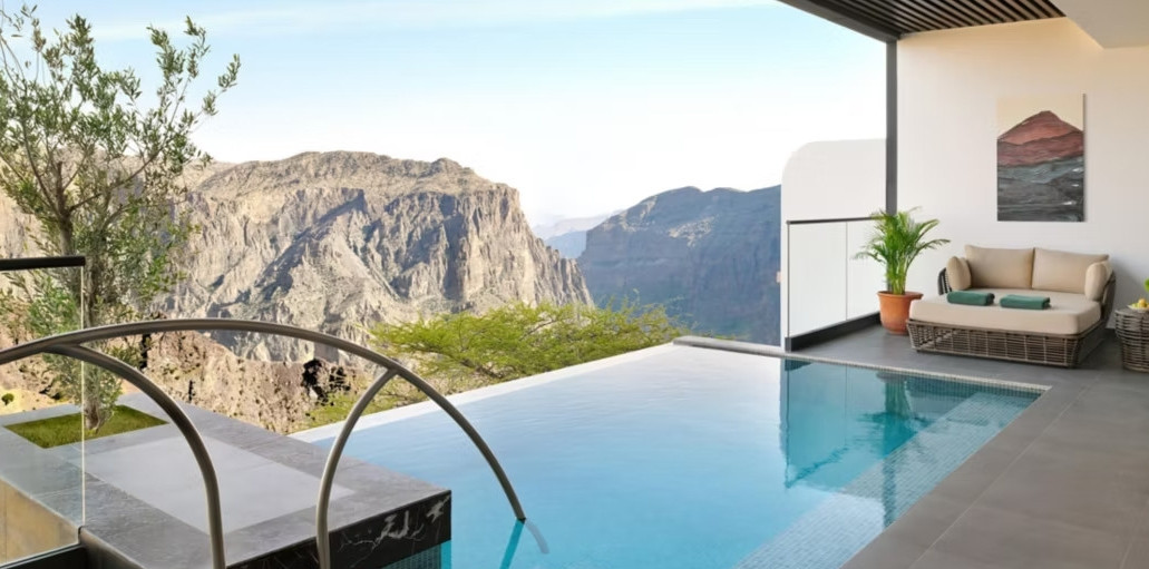 Архитектура отеля органично вписана в горный ландшафт. Восьмиэтажное здание с традиционными оманскими элементами, деревянными деталями и местными предметами искусства в интерьерах создает ощущение полного единения с природой и культурой региона. Из номеров и с балконов открываются захватывающие виды на каньоны и крыши близлежащей деревни. Особое внимание здесь уделено велнес-направлению – туристы могут посетить просторный спа-комплекс с гималайскими соляными комнатами, термальными зонами, хаммамом и крытыми бассейнами. Для полного расслабления предлагаются сеансы йоги со звукотерапией. Кулинарные впечатления здесь не менее яркие – рестораны предлагают блюда, приготовленные из свежих местных продуктов с использованием традиционных оманских специй. Туристов ждут дегустации чая ручного сбора и арабского кофе. Отель подходит для разных форматов отдыха – от романтического путешествия до семейного отпуска. Для детей предусмотрены игровые зоны и творческие занятия, а подогреваемый инфинити-бассейн становится любимым местом гостей в любое время года.