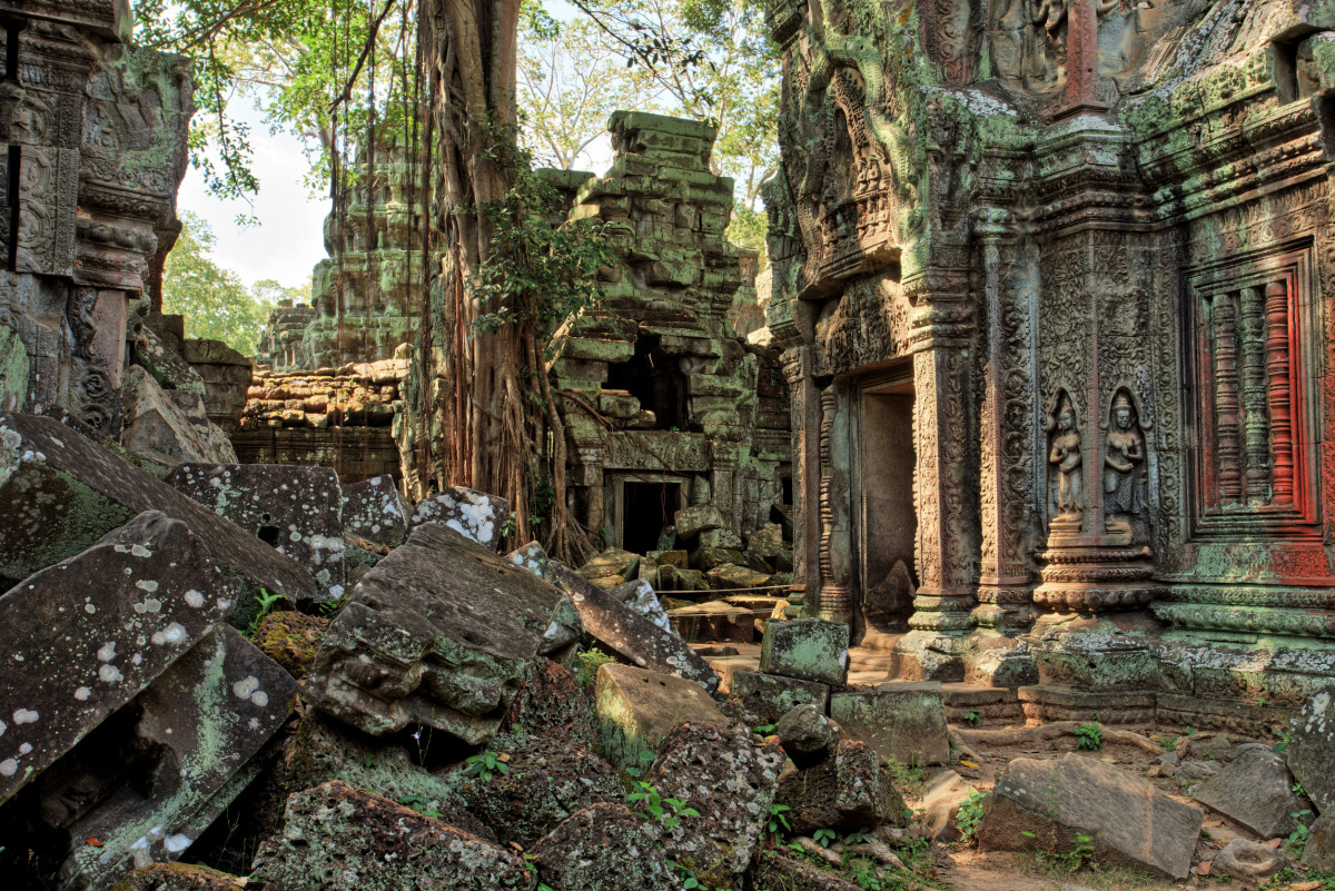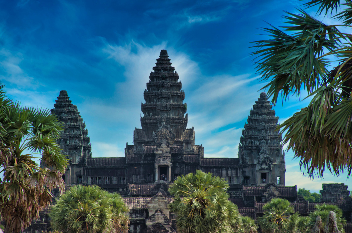 Развитие Камбоджи неразрывно связано с расцветом Ангкорской империи (IX–XV века), также известной как Кхмерская империя, которая занимала территорию современной Камбоджи и части соседних стран. Главным архитектурным достижением стал храмовый комплекс Ангкор-Ват, крупнейший религиозный памятник мира, изначально построенный как индуистский храм, посвященный богу Вишну, а позднее преобразованный в буддийский центр. Храмы Ангкора характеризуются монументальной симметрией, отражающей космологические и мифологические представления, а их стены украшены барельефами с эпическими сюжетами «Рамаяны» и «Махабхараты», а также сценами повседневной жизни кхмеров. Наследие Ангкора оказало большое влияние на культурную идентичность Камбоджи: храмовый комплекс изображен на флаге страны и является символом национальной гордости.
