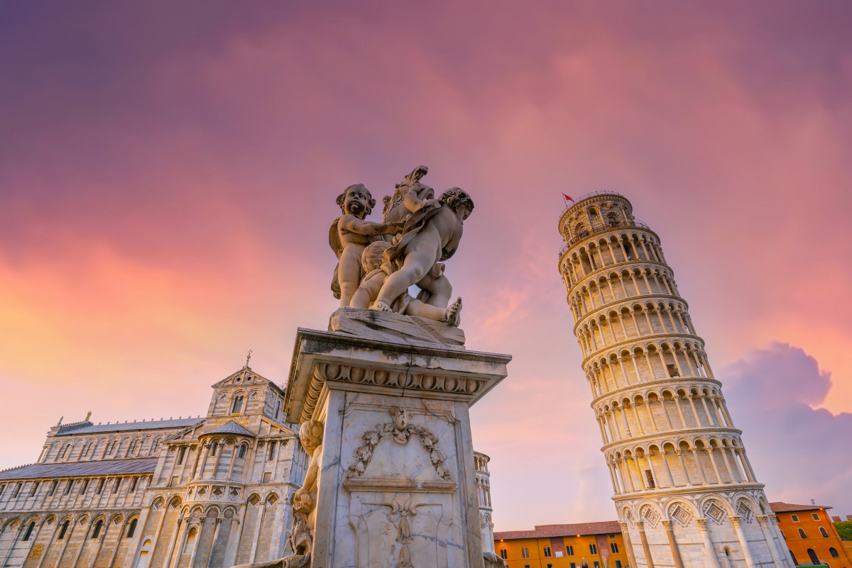 Колыбель Возрождения, сокровищница литературы – Флоренция, родина Данте Алигьери. Именно в этом городе он создавал строки «Божественной комедии», отправляя своего героя в путешествие сквозь Ад, Чистилище и Рай – это не только метафизические миры, но и отражение моральных ориентиров городской жизни. Старинные кварталы с их извилистыми улочками, скрытыми двориками и оживленными площадями создают впечатление, что город и правда был участником поэтического сюжета. Непосредственное отношение к «Божественной комедии» имеют Баптистерий Святого Иоанна, Домский собор и Колокольня Джотто. Баптистерий Святого Иоанна – одно из самых древних зданий города, построенное еще в IV–V веках. Здесь проходили крещения членов флорентийской знати. Данте не был исключением: предполагается, что он видел в Баптистерии символ духовного возрождения и очищения, что прямо перекликается с тематикой «Божественной комедии». Монументальные бронзовые двери, украшенные сценами из Библии, также могли вдохновлять поэта на создание сложных аллегорий и образов, вплетенных в его поэму. Домский собор Санта-Мария-дель-Фьоре – величественный центр духовной жизни Флоренции, строительство которого продолжалось несколько столетий: в «Божественной комедии» Данте описывает величие небесного порядка и гармонию Вселенной, а интерьер и архитектурные формы собора отражают эту гармонию. Колокольня Джотто, стоящая рядом с собором, также имеет особое значение. Она выступает ориентиром и визуальным центром города, а ее архитектура и пропорции – образцом гармонии и красоты. В «Божественной комедии» Данте часто обращается к символам света, высоты и вертикали как проявления божественного порядка, и колокольня Джотто может быть визуальным воплощением этих идей. Доказательством служит и то, что Данте и Джотто были близкими друзьями, говорили об искусстве, придерживались похожих точек зрения, одинаково рассуждали о жизни и глубоком смысле своего ремесла.