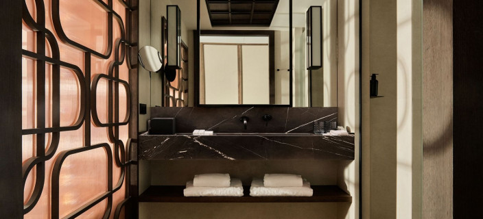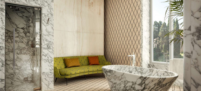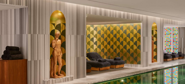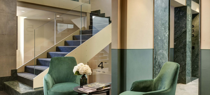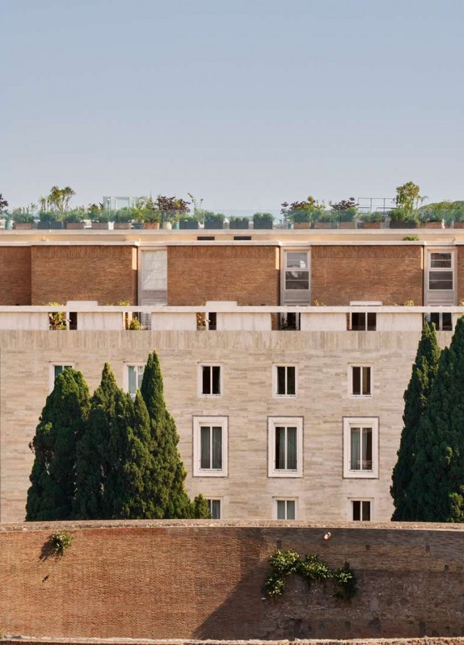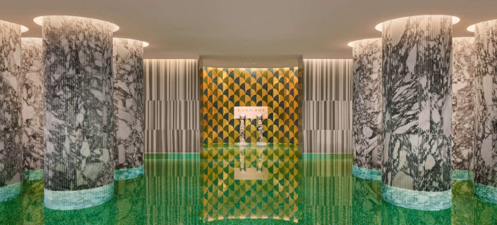 Используя современный императорский мрамор, дизайнеры архитектурной фирмы Acpv Architects Антонио Читтерио Патрисия Виль работали с большими цветными блоками, чтобы подчеркнуть индивидуальность Bulgari как римского ювелира. Благодаря смелому замыслу архитекторов оригинальное здание 1940-х годов превратилось в великолепный современный памятник. Отель открылся в июне 2023 года.