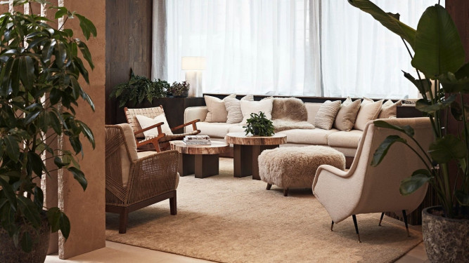 В оформлении интерьеров использованы натуральные материалы, а в каждом номере предусмотрено место для медитации гостей. Ananda In The Himalayas находится в 4,5–5 часах езды от аэропорта Дели. Также можно воспользоваться трансфером на вертолете (1 час) или внутренним перелетом до аэропорта Дехрадун (30 мин), а затем доехать на машине (40 мин).
