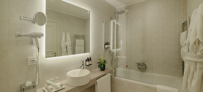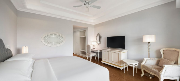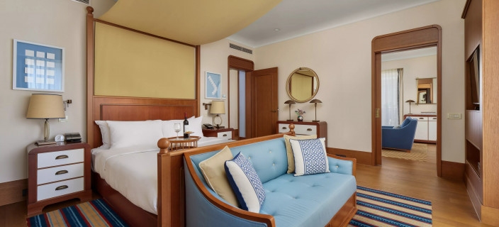 Тино Зервудачи из Mlinaric, Henry & Zervudachi, оформил 87 номеров и люксов в крыле Venezia в элегантной морской тематике: акцент сделан на тонких канатных деталях, а над кроватями нависают льняные балдахины, напоминающие паруса. Всего в отеле 175 номеров.