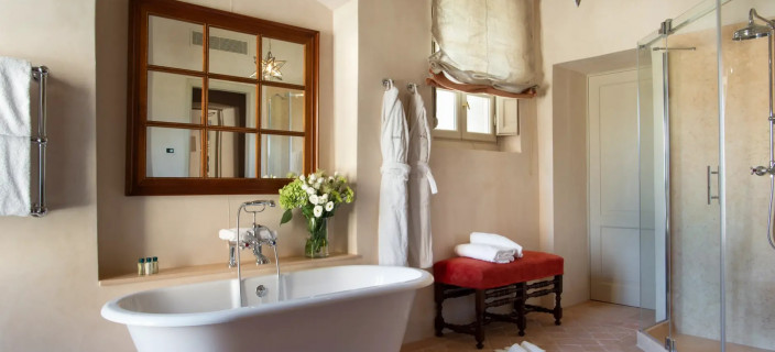В 2020 году курорт прошел масштабную реновацию, которая успешно сочетает гармонию природы и архитектуры. А обновленная цветовая гамма, вдохновленная изменчивыми оттенками природного горячего источника, гармонично дополняется нежными тонами дерева и травертина, внедряя современное звучание в традиционную тосканскую архитектуру.